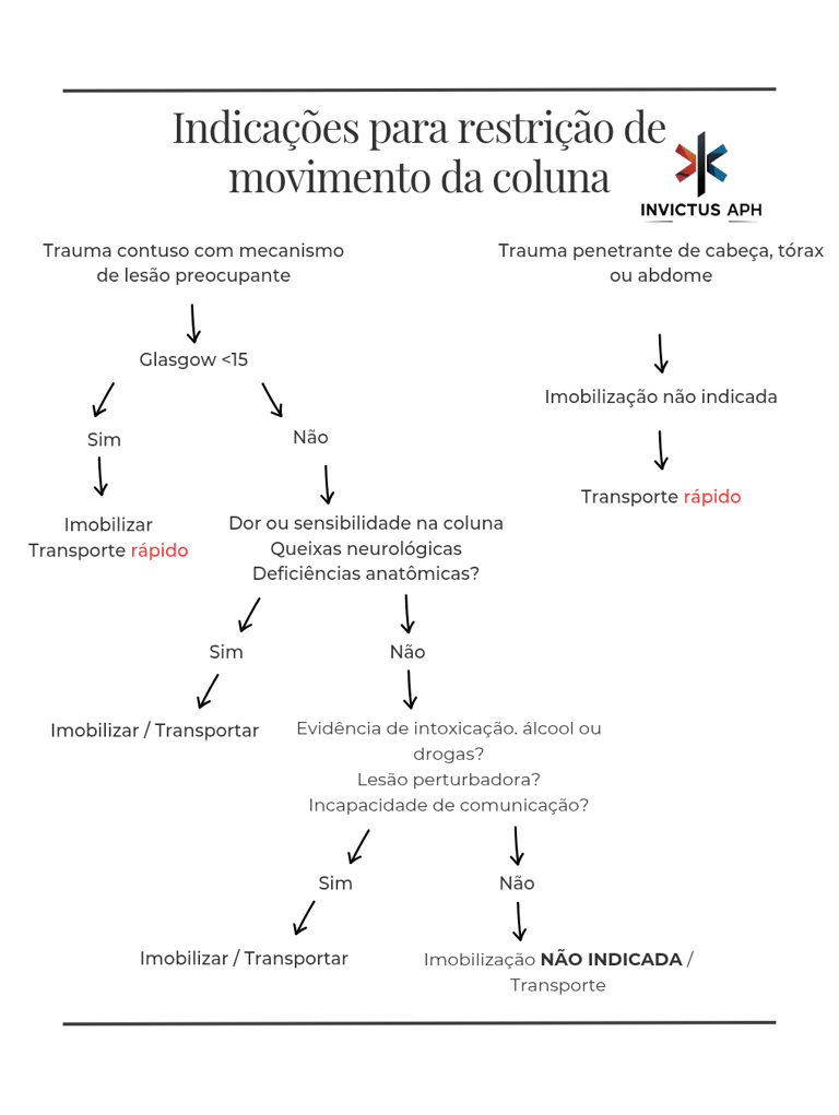 A restrição de movimento da coluna vertebral (RMC) é uma intervenção valiosa — quando corretamente indicada. O uso seletivo, baseado em critérios objetivos e fluxogramas validados, protege o paciente e otimiza os recursos do sistema de emergência.
